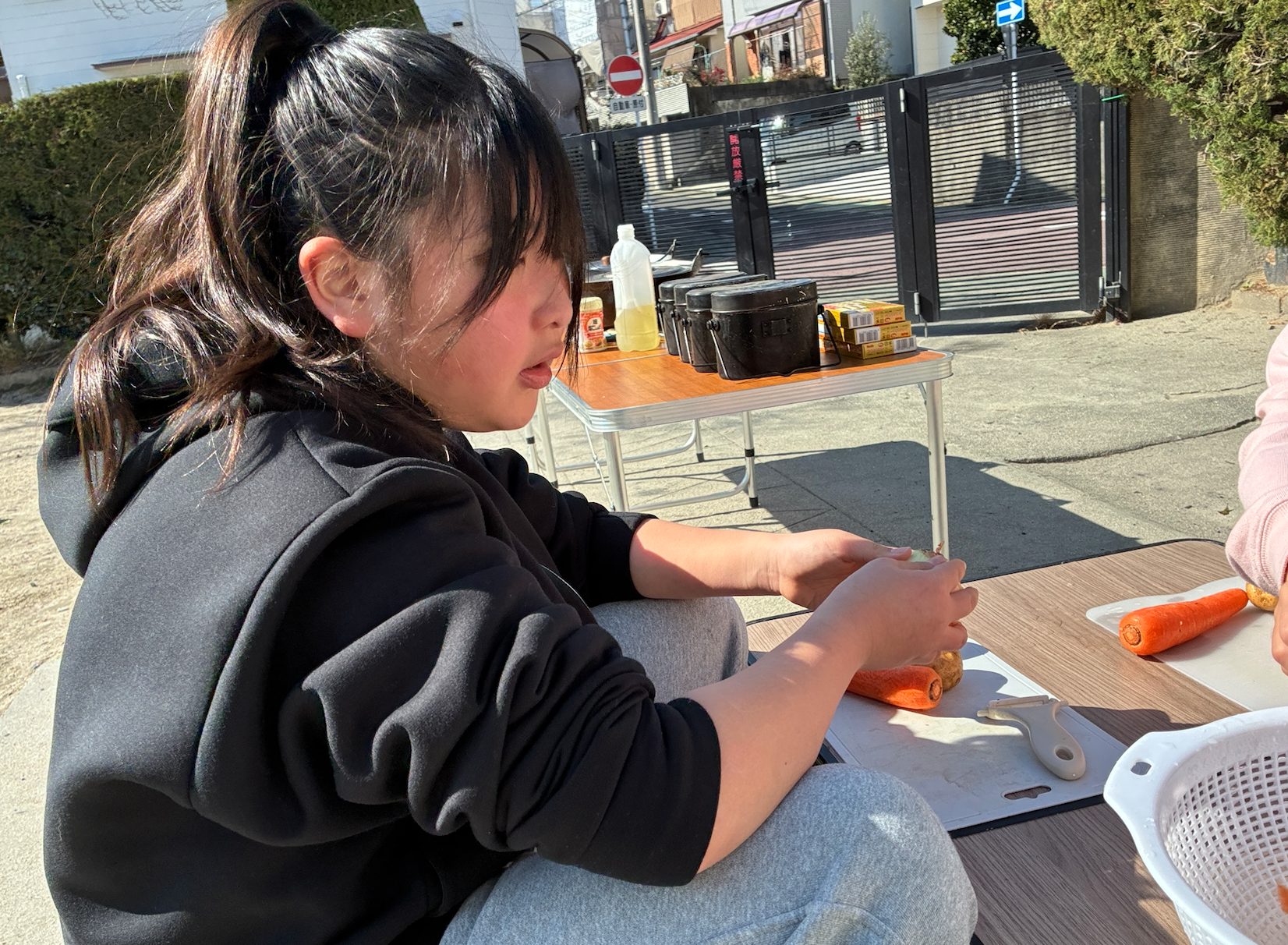 火おこしチーム、お米を炊くためのはんごう炊飯チーム、具材のお野菜を切るチーム。
