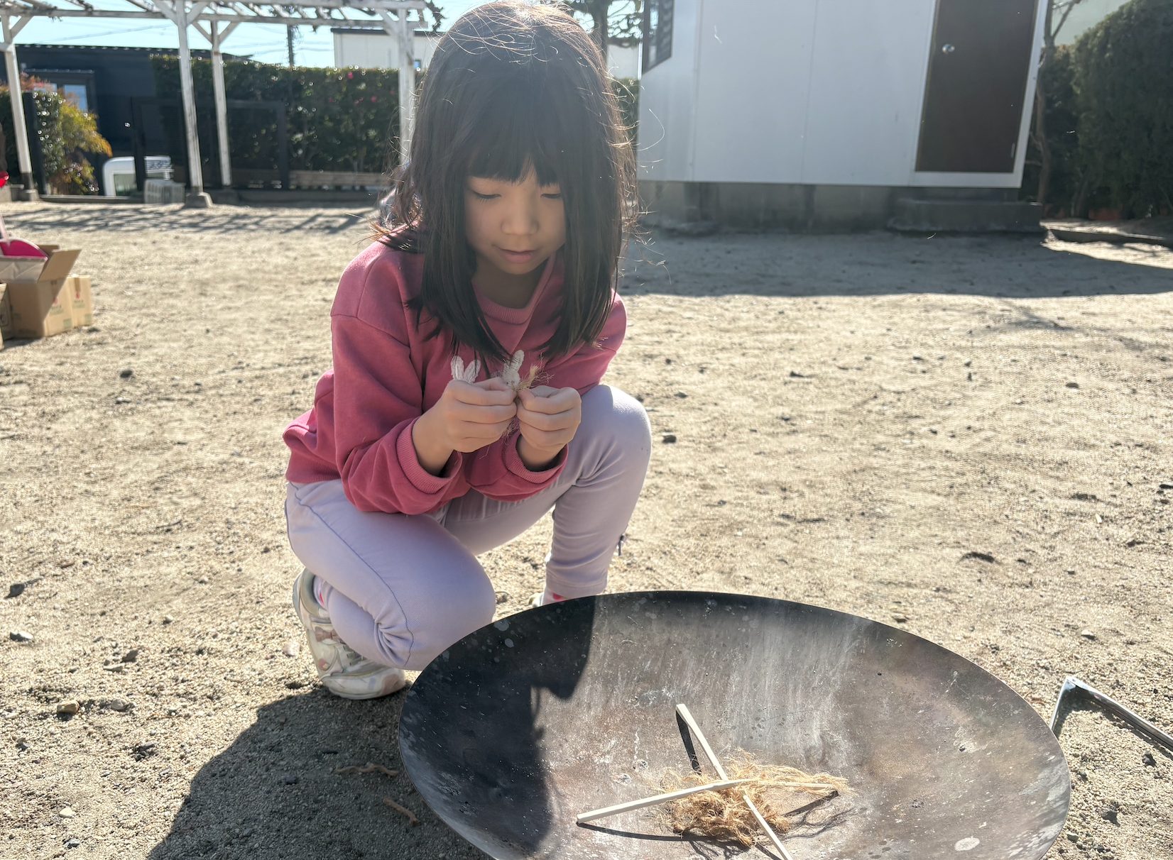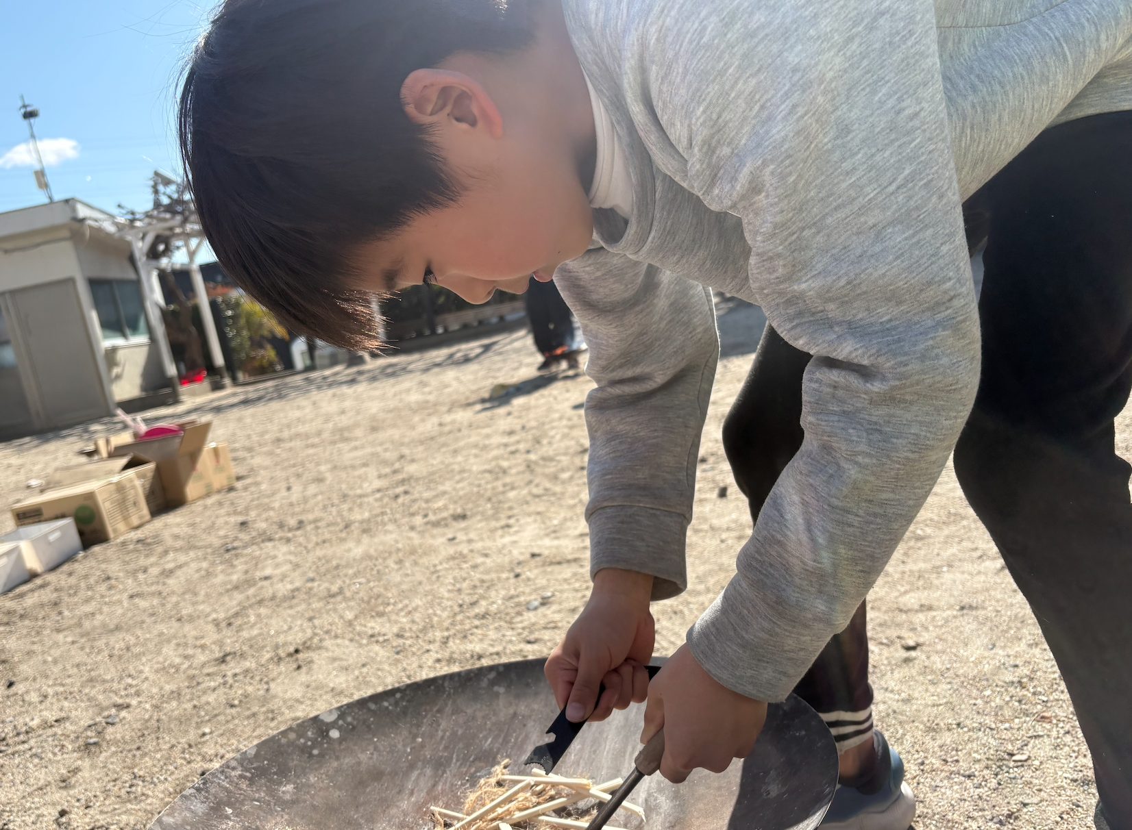 小学ぼうけん教室で子どもたちから大人気の火おこし。