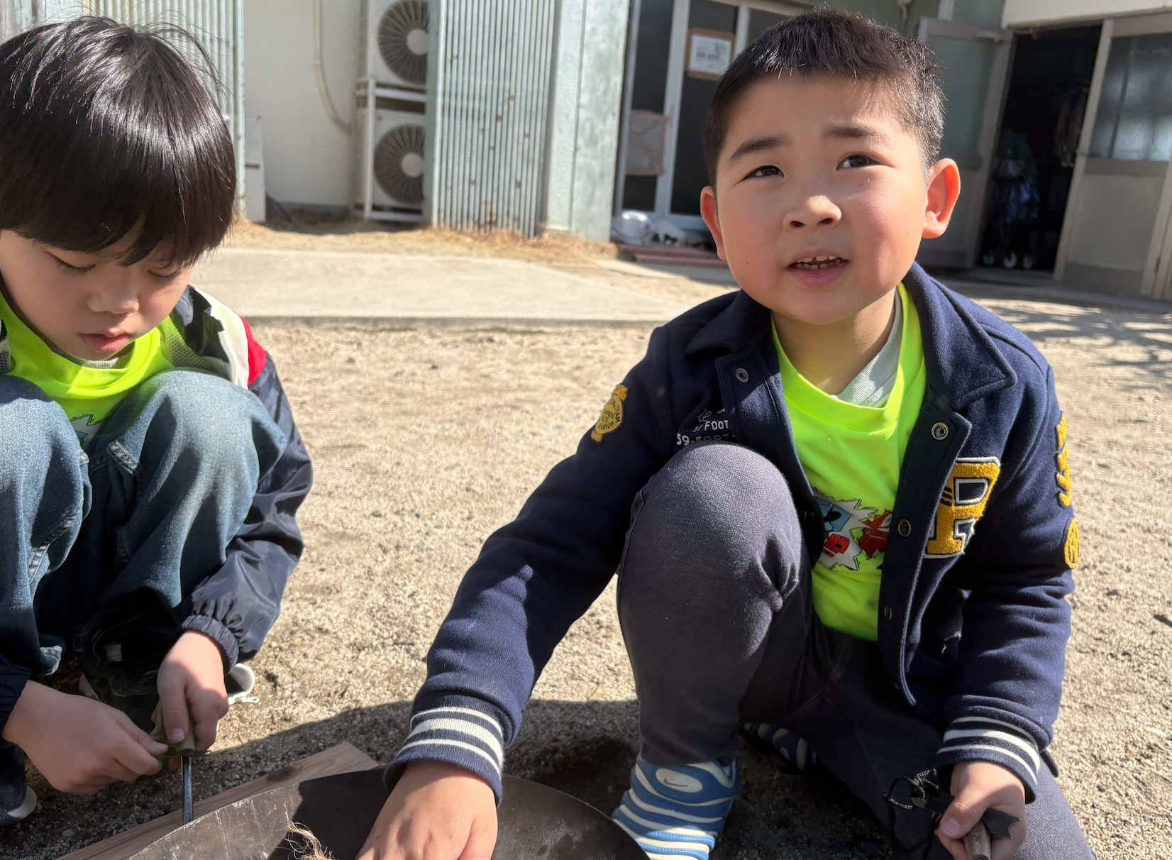 「火おこし!」「おにごっこ!」「がけのぼり!」「いきものさがし!」「かんけり!」とやりたいことが次々と出てくる子どもたち。自分のやりたいことをしっかり伝えられる子どもたちって素敵ですよね。