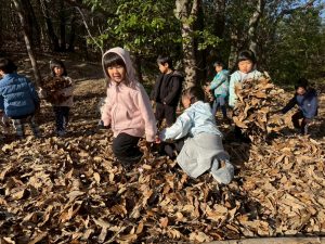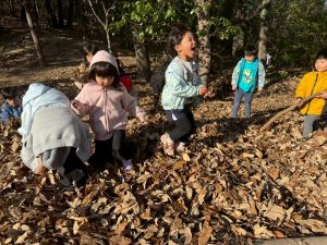 「みんなで沢山集めるぞ~!」みんなでブルドーザーに変身して落ち葉回収!