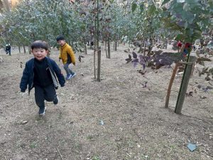 「さぁ、いくぞ~」ユーカリ畑の中をかわいいオニたちが頑張って探しています。