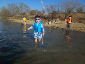 この寒い風の中でもチーム全員が川の中に入ることが出来ました。