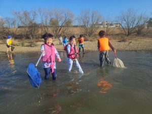 夏の川との違いもわかり、「つめたかったけど、たのしかった!」