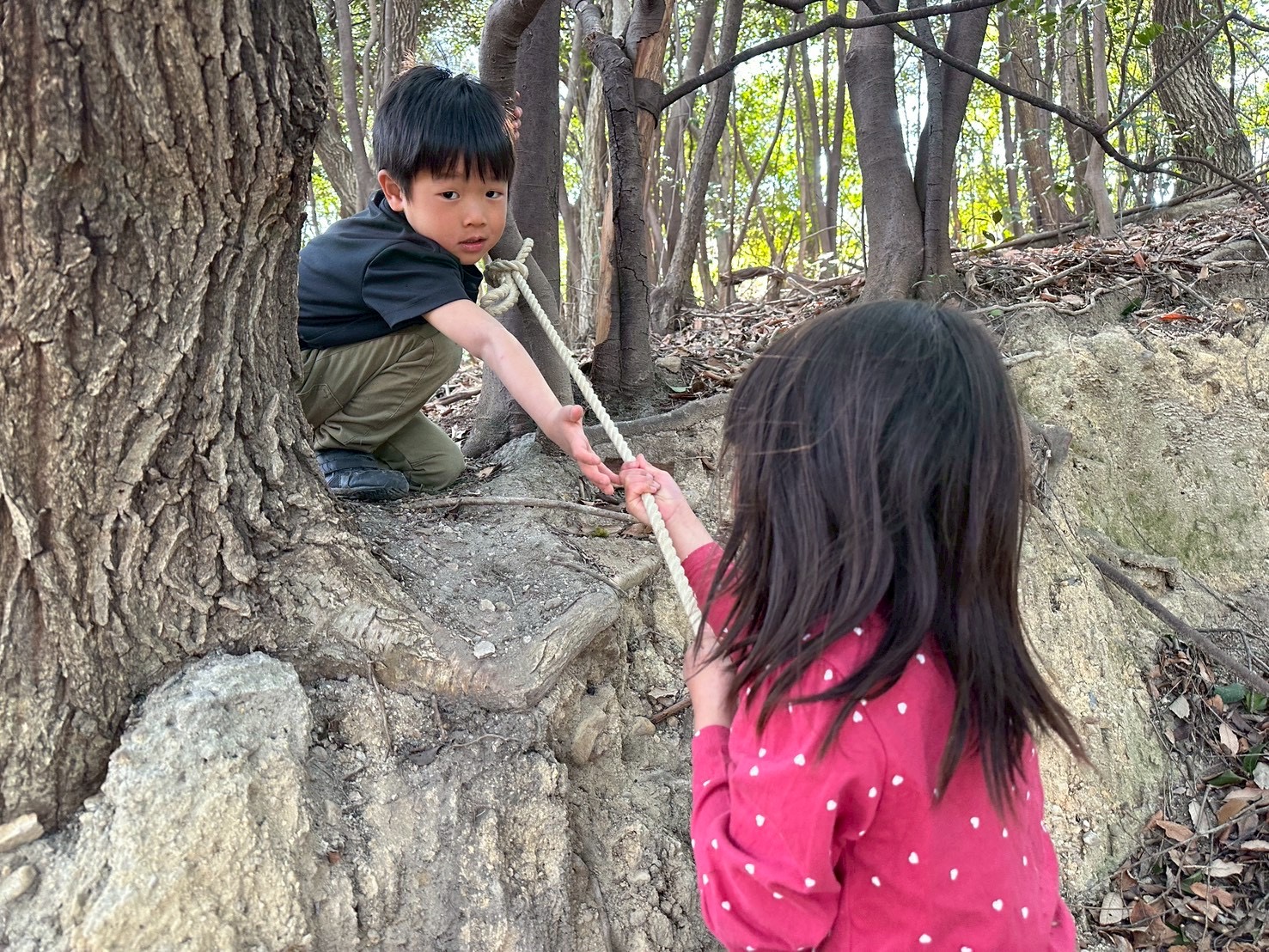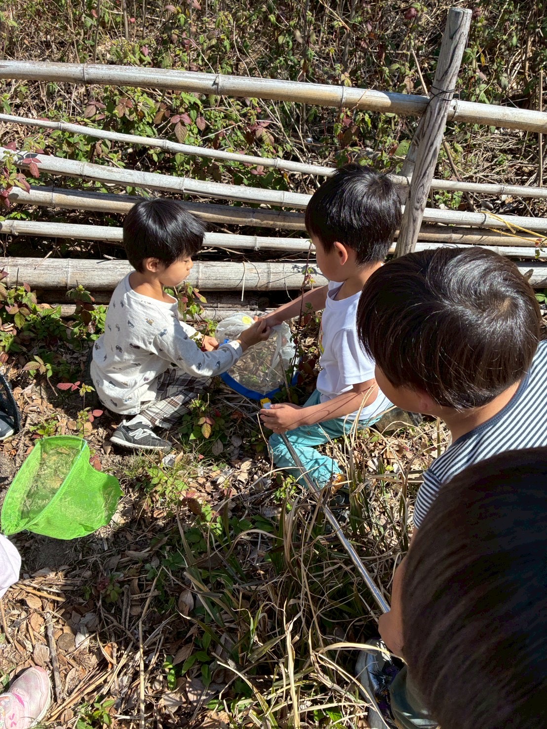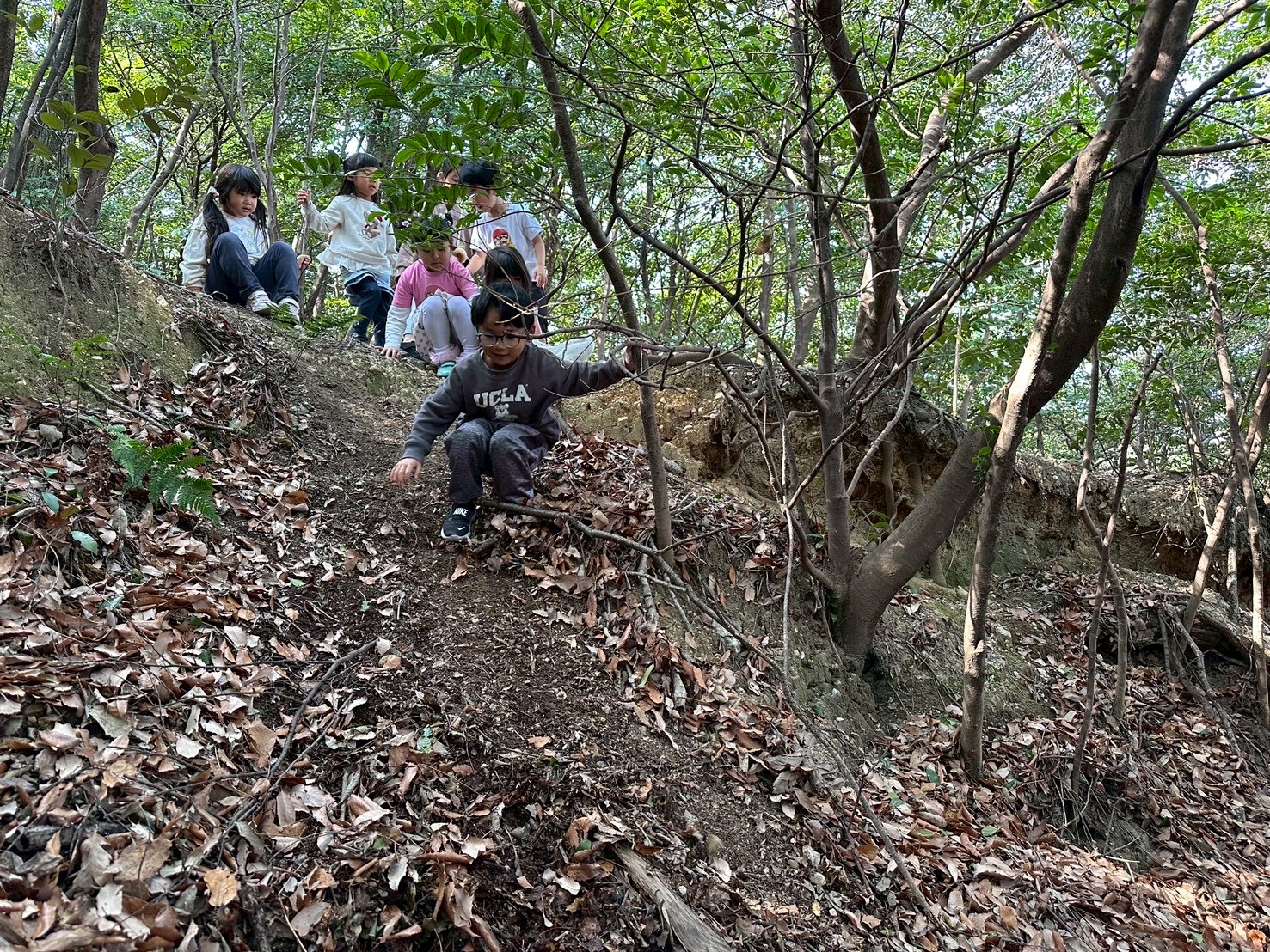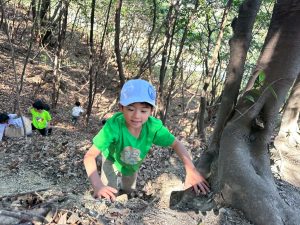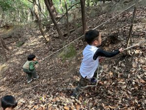 生き物探し・爆弾穴・木登り・一本橋と、