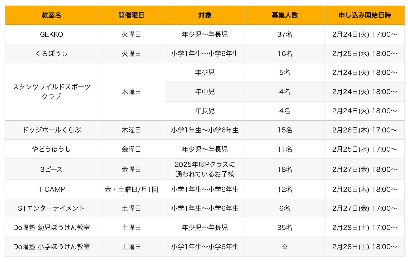 現会員の方に継続アンケートをとったところ、定員に達したためキャンセル待ちでの受付となります。幼児ぼうけん教室の募集状況によって小学ぼうけん教室の枠を増員する可能性がございますので、ご検討中の方はキャンセル待ちにご登録よろしくお願いします。後日こちらからご連絡を差し上げます。