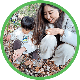 はじめは少し緊張していたのですが、先生が子どものペースに合わせてサポートしてくれたおかげで、いつの間にか子どもが楽しそうに遊んでいました。私も安心して見守ることができ、ホッとしました。自然の中で過ごす時間が親子共にとても貴重な経験になりました。